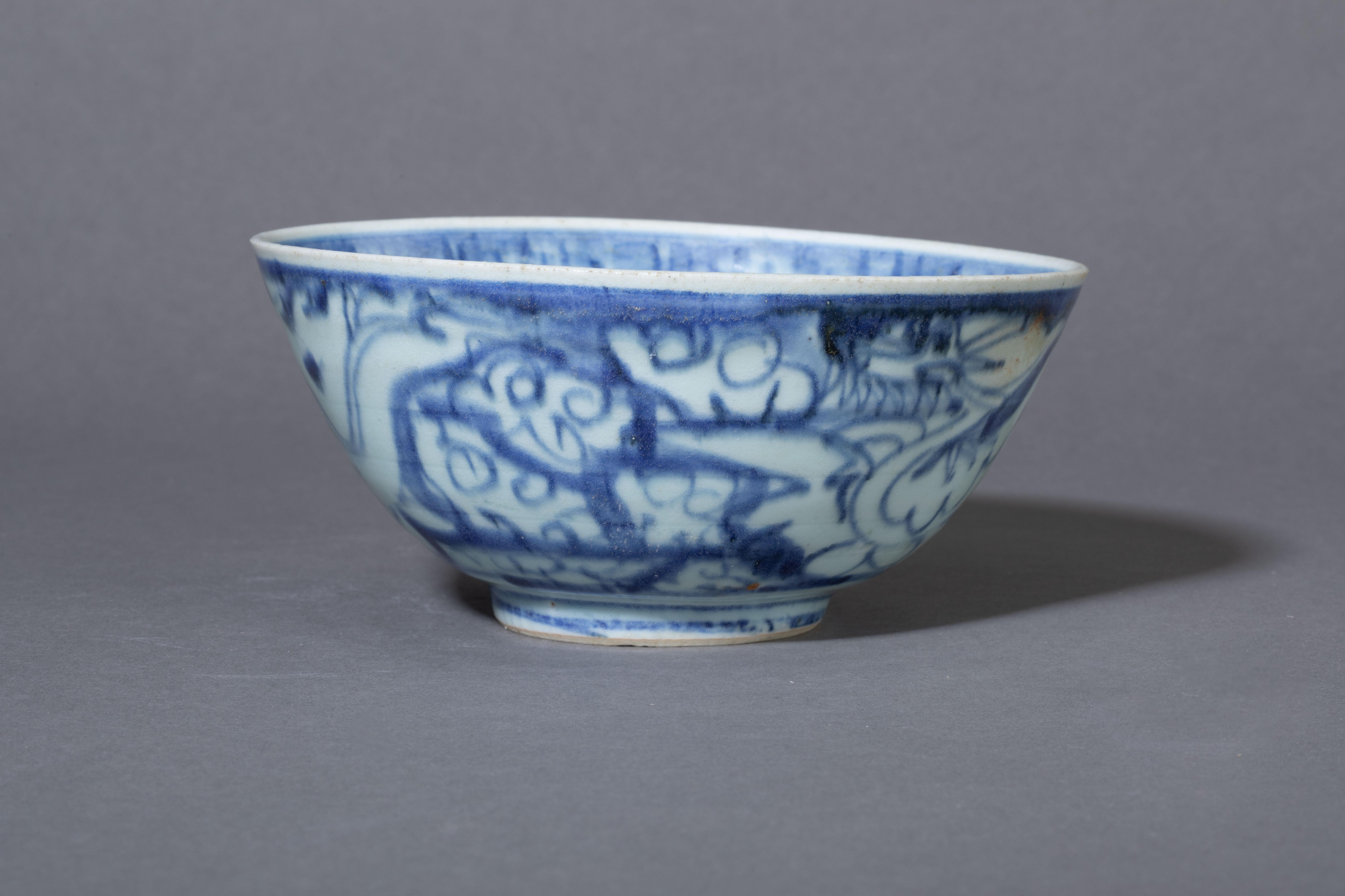明万历景德镇窑青花应龙纹瓷碗